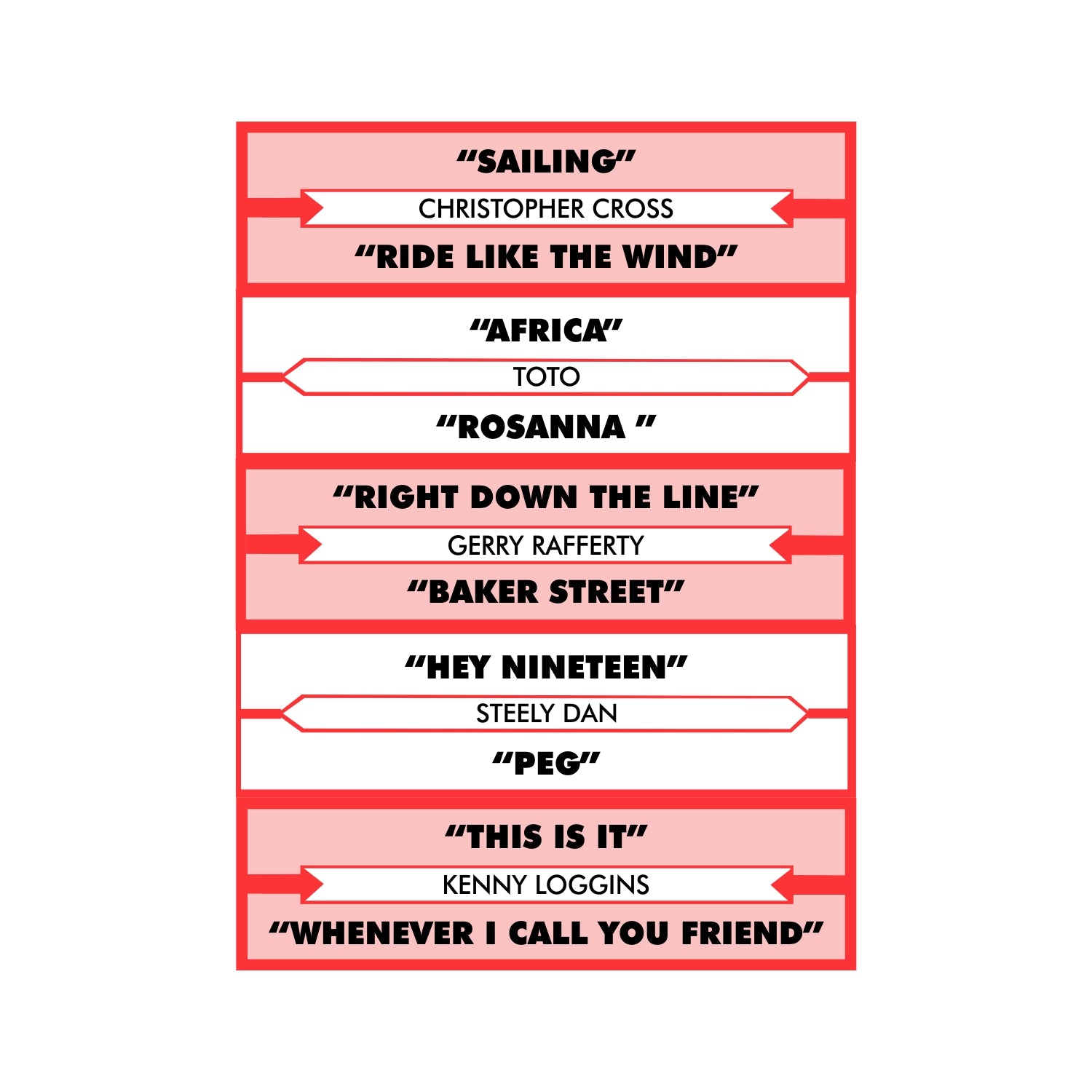 - Version 1 features: Christopher Cross, Toto, Gerry Rafferty, Steely Dan and Kenny Loggins.